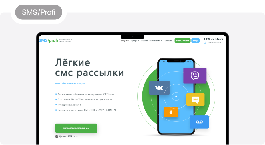 6. SMSProfi Многоканальный сервис, который работает с 2009 года. Агентство предлагает широкий выбор услуг — рассылки, опросы по SMS, таргетированная реклама и не только. При регистрации компания дарит 100 рублей на тестирование функционала. Платформу отличает удобный импорт контактов из файлов разного типа, например, Exсel-таблиц, возможность создания стоп-листов, персонализации текста и использования шаблонов. Доступен предварительный просмотр сообщения с проверкой орфографии. Средняя стоимость одного SMS — от 2,93 рубля.