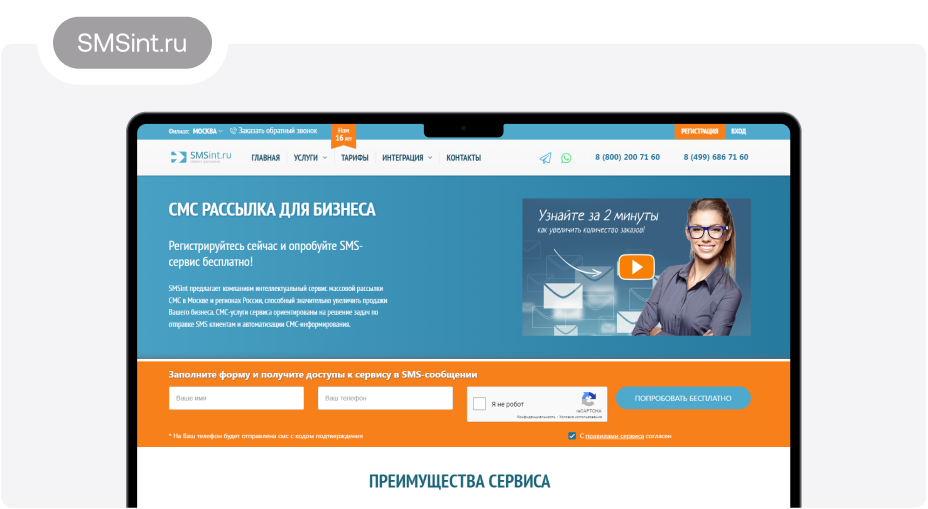 9. SMSint.ru Платформа открылась в 2009 году. Сегодня она предлагает рассылки SMS, отправку сообщений в мессенджерах и другие услуги. Минимальная стоимость SMS — 39 копеек. Предусмотрен бесплатный пробный период, опции фильтрации абонентов, создания шаблонов. Платить за указание имени отправителя не нужно, как и за интеграцию с популярными CRM-системами. Пополнять баланс можно на любую сумму, а скорость отправки сообщений составляет от 6000 в минуту.
