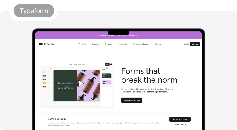 $15 за план Premium, $45 за Business, $29 за каждого пользователя при использовании командного тарифа. Есть бесплатная версия — она позволяет собрать 2500 ответов.